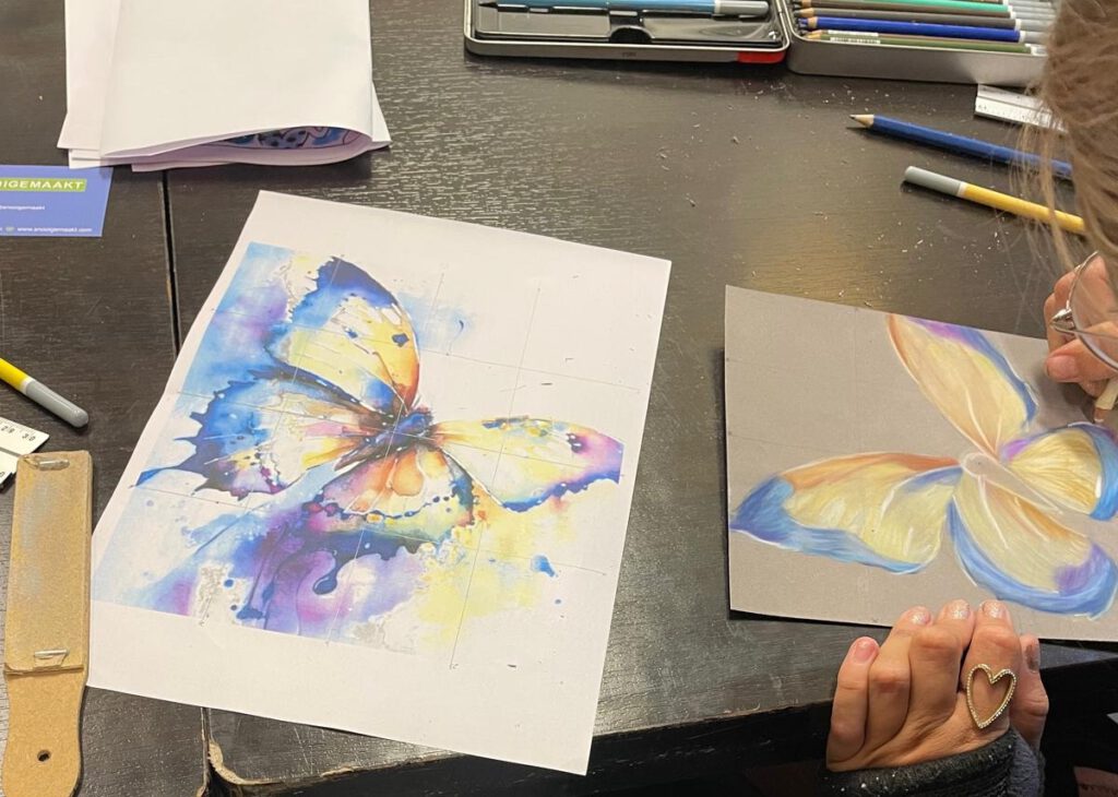 Pastelpotloden zijn een geweldig medium: zacht, precies, rijk aan kleur en verrassend veelzijdig. Tijdens de workshop werk je met de hoogwaardige Carbothello Stabilo pastelpotloden, zodat je meteen het verschil voelt tussen “iets proberen” en echt met goed materiaal aan de slag gaan.